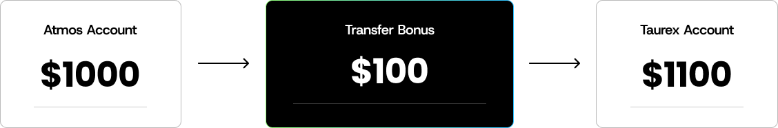 When you transfer your payouts to a Taurex trading account, you’ll receive a 10% deposit bonus, boosting your balance and giving you more to trade with.